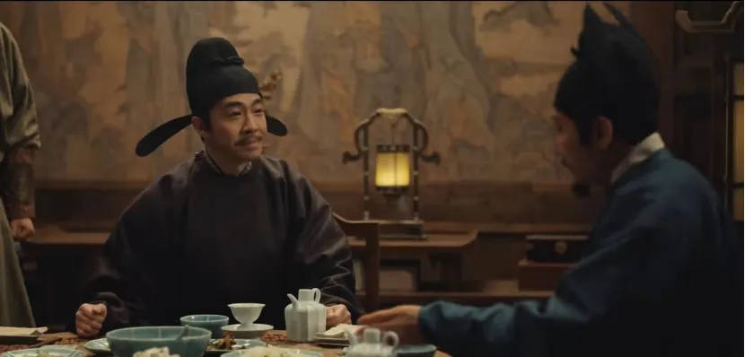 即,几人所饮第一杯并非酒,而是茶。郭荣解释完后,紧接着再度倒茶,众人再饮。将茶从壶中倒进杯子里后直接执杯而饮,无需多余环节,是今天盛行的饮茶方式,可称瀹茶法,也就是我们常说的泡茶法。其本质是茶叶和水共处壶中,杯中只盛泡好的茶水。瀹茶的源头可追溯至南宋,明太祖朱元璋“废团为散”后,这一饮茶方式才得到迅速推广。正如文前所言,《太平年》的时代背景是五代十国时期,则若瀹茶情形出现在剧中,就出现了时代错配的问题。