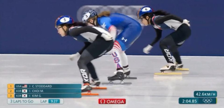 开场后美国的斯托达尔德领先。韩国两位选手跟在两位意大利选手身后伺机而动。